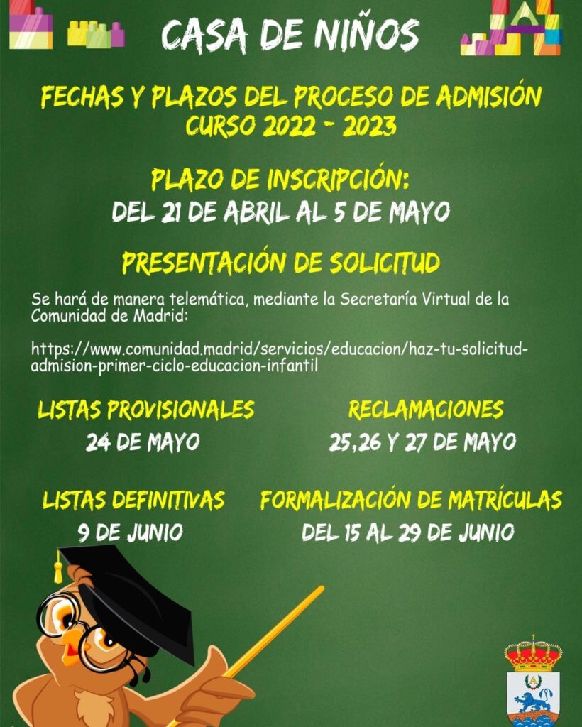 Comienza plazo de inscripción curso 22/23 Casa de Niños