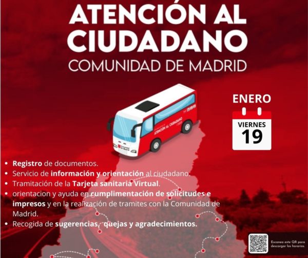 El autobús se ubicará junto al Ayuntamiento y atenderá de 9:00 h a 10:00 h